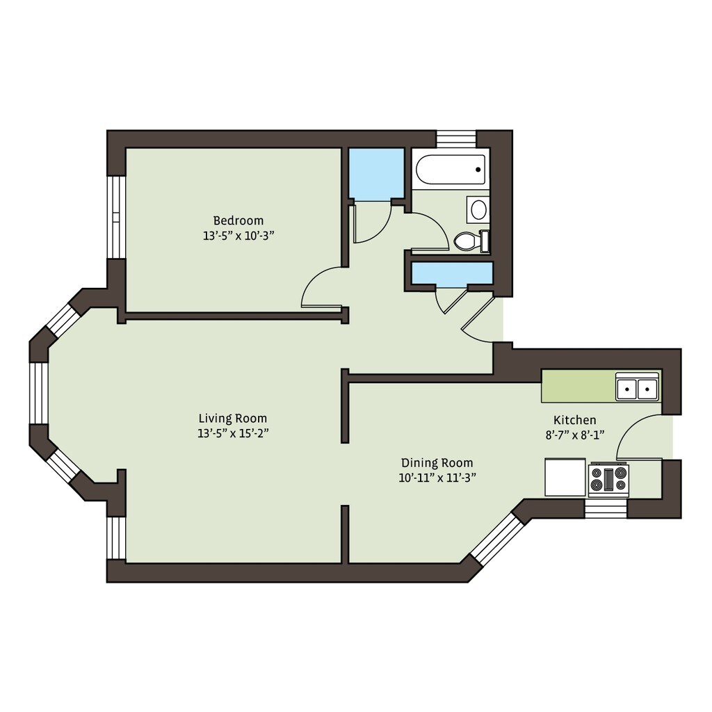 Apartment Model: 5415-0bAStudio, 1 Bath, 413 sq ftUnavailable![]()