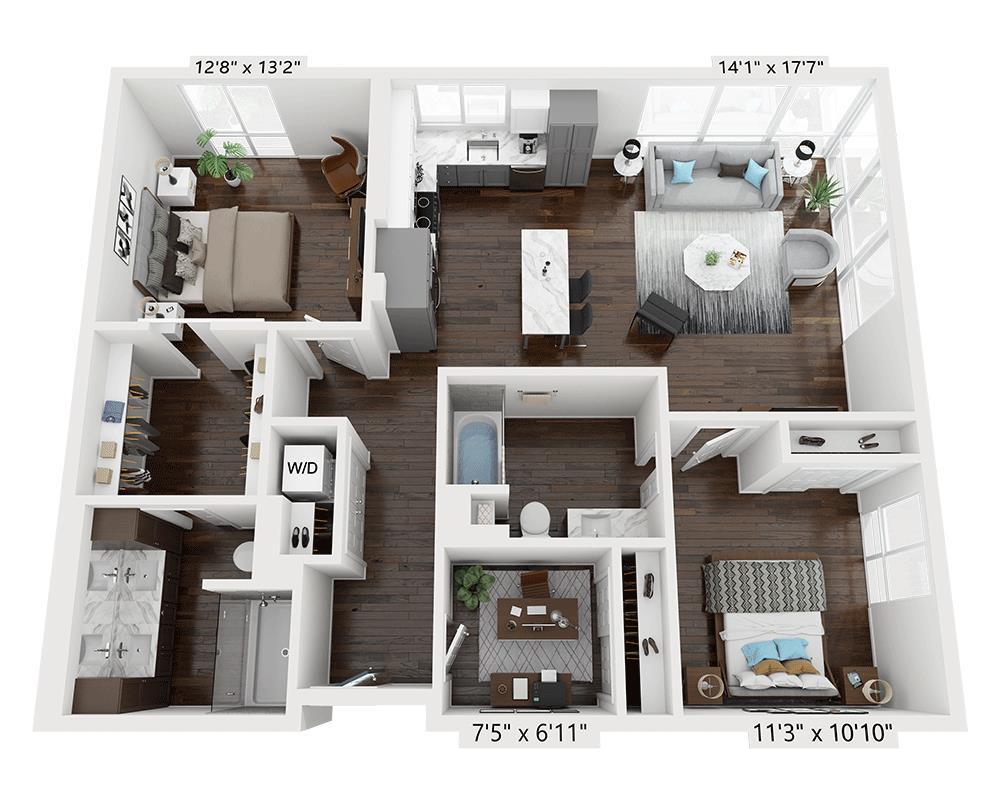 Studio, 1 Bath, 635 sq ftAvailable NowModel Gallery