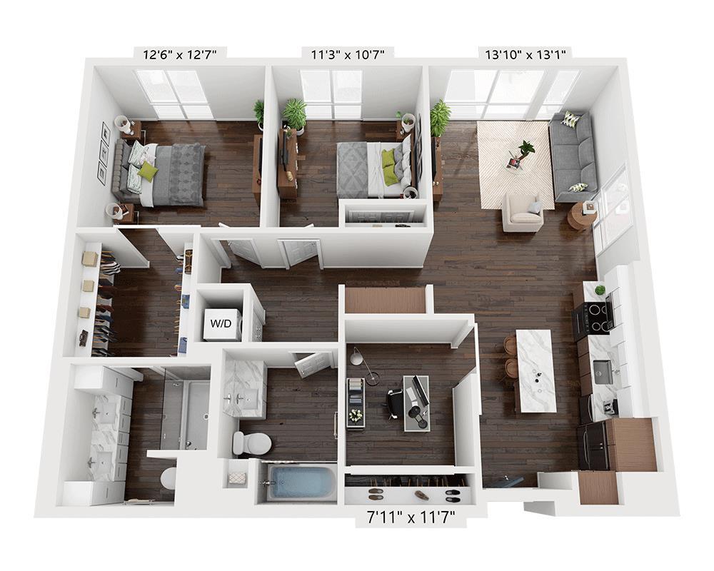 Studio, 1 Bath, 635 sq ftModel Gallery
