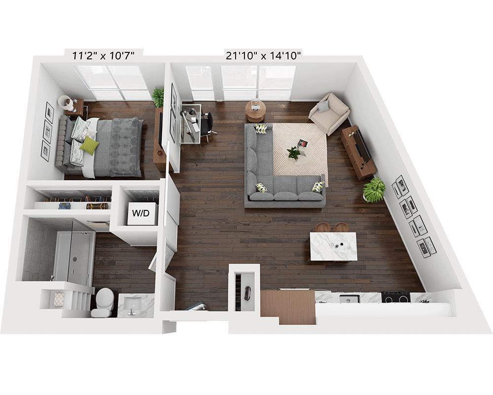 Studio, 1 Bath, 786 sq ftLargest StudioThis is the largest Studio at this PropertyModel Gallery
