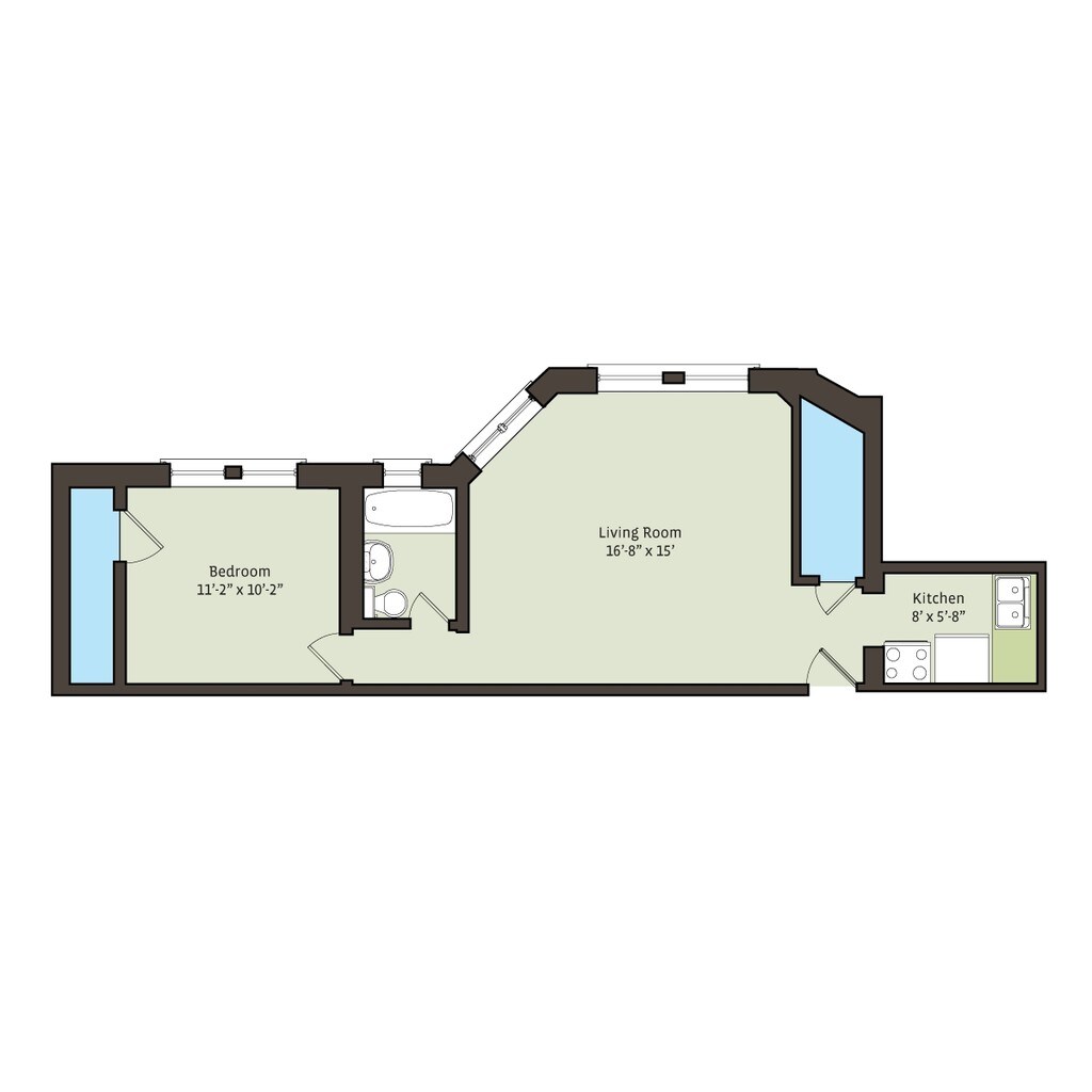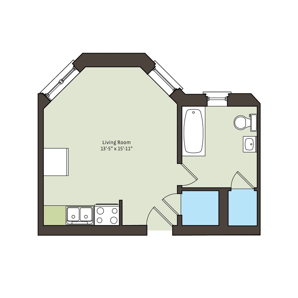 Studio, 1 Bath, 295 sq ftModel Gallery