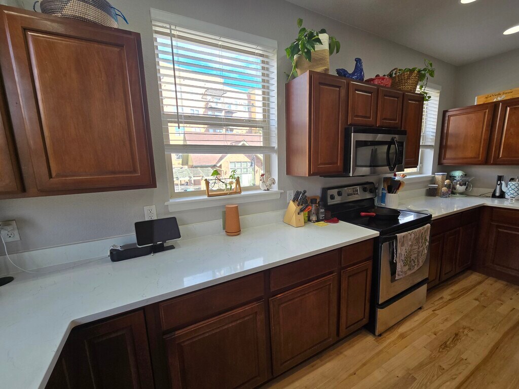 Amazing location and townhouse in the heart of Olde Town Arvada. Rare 3-bedroom unit across from the pool and fitness center. 2-car garage on the main floor, living, dining, and kitchen on the 2nd floor, 3 bedrooms on the third floor. The rowhouse was recently remodeled 2-years ago with all new kitchen, flooring, and bathrooms. The location and unit can't be beat! A short walk to Olde Town Arvada, which is growing in size and amenities. Further, also next to the Gold Line light rail stop for easy access to downtown Denver. Great community, location, and unit. Call or email today as this unit will go fast!