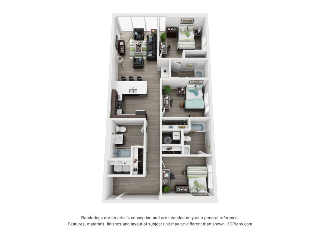 4 Beds, 4 Baths, 1385 sq ftAvailable NowLargest 4 BedroomThis is the largest 4 Bedroom at this PropertyModel Gallery