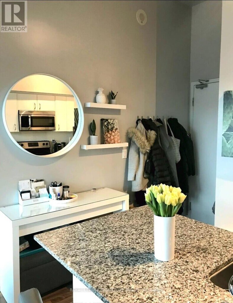Welcome to Bliss Condos! This Ground Level Studio Features 14' Ceilings and Massive Windows That Let In A Ton Of Natural Light. Absolutely No Wasted Space. The Terrace Faces South and Adds A Ton Of Functionality. Adds A Ton Of Functionality. The Modern U Shaped Kitchen Features Full Size S/S Appliances & Granite Countertops. This Unit Has Been Very Thoughtfully Maintained With Built In Storage and Additional Closets. Parking and Locker Are Included! Amenities Include: 24 Hour Concierge,Meeting/Party Room,Rooftop Deck,Indoor Pool,Gym,Car Wash,Guest Suites and Visitor Parking. Close to Everything- Transit,King West,Grocery Stores,Restaurants,The Waterfront and more. (id:52069) ID#: 2066111