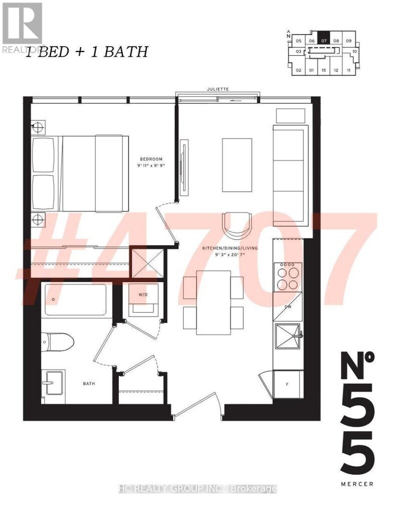 Unit: 4707Model: 55 Mercer St$2,2501 Bedroom, 1 Bath, sq ftAvailable Now