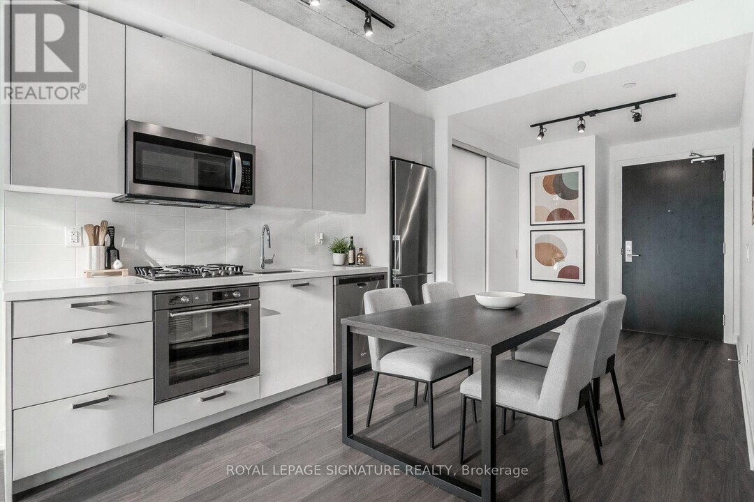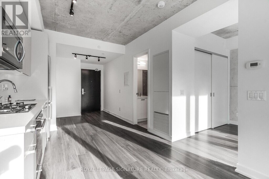 Location! 1-Bedroom smart lay out,where floor-to-ceiling windows invite natural light to dance across chic exposed concrete accents. Enjoy an open layout with soaring 9-ft ceilings,hardwood floors,and a spacious balcony perfect for outdoor entertaining. The modern kitchen features quartz countertops and stainless steel appliances. Conveniently located near public transit,Distillery District,St. Lawrence Market,parks,trails,and DVP. Building amenities include a concierge,outdoor pool,BBQ area,gym,party room,and visitor parking. Embrace urban luxury at its finest in this exceptional property. (id:52069) ID#: 2066111