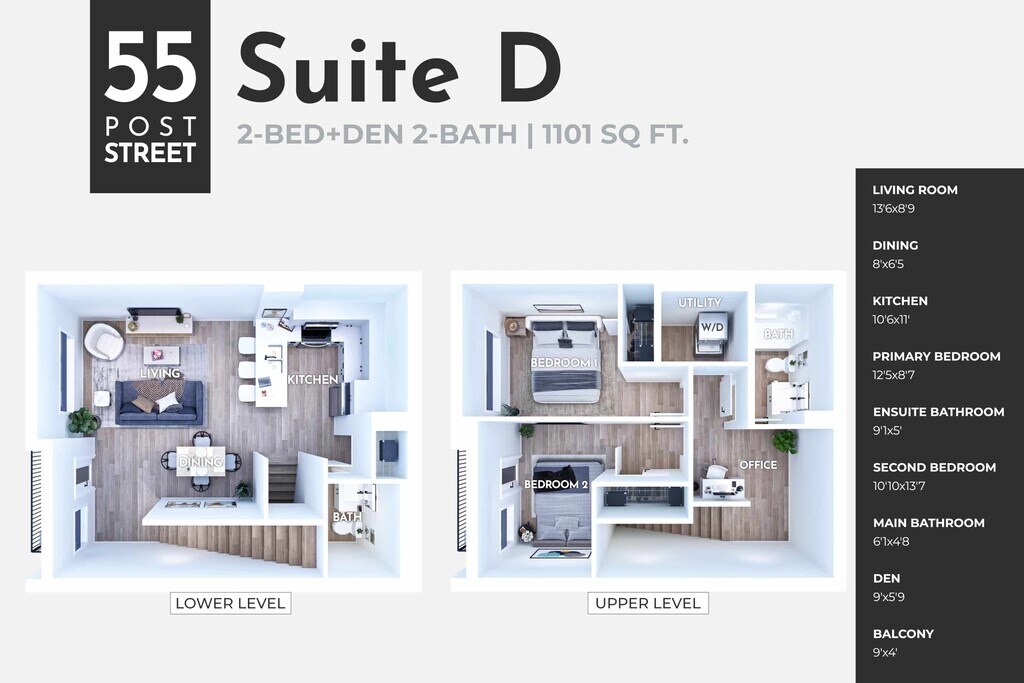 Apartment Model: Suite D2 Bedroom, 2 Bath, 1101 sq ftAvailable November 1, 2025Suite D - Floorplan 1 Suite D - Floorplan 2 Suite D - Floorplan 3 Suite D - Floorplan 4 Suite D - Floorplan 5 Suite D - Floorplan 6 Suite D - Floorplan 7 Apartment Unit: 103Apartment Model: Suite D2 Bedroom, 2 Bath, 1101 sq ftAvailable November 1, 2025Apartment Unit: 108Apartment Model: Suite D2 Bedroom, 2 Bath, 1101 sq ftAvailable November 1, 2025Apartment Unit: 113Apartment Model: Suite D2 Bedroom, 2 Bath, 1101 sq ftAvailable November 1, 20253 Bedrooms