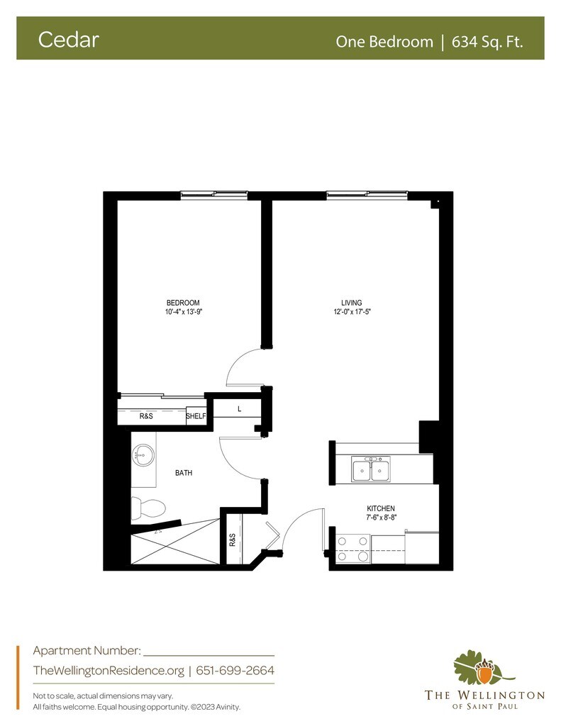 Apartment Model: Cedar$1,1661 Bedroom, 1 Bath, 634 sq ftAvailable Now![]()
