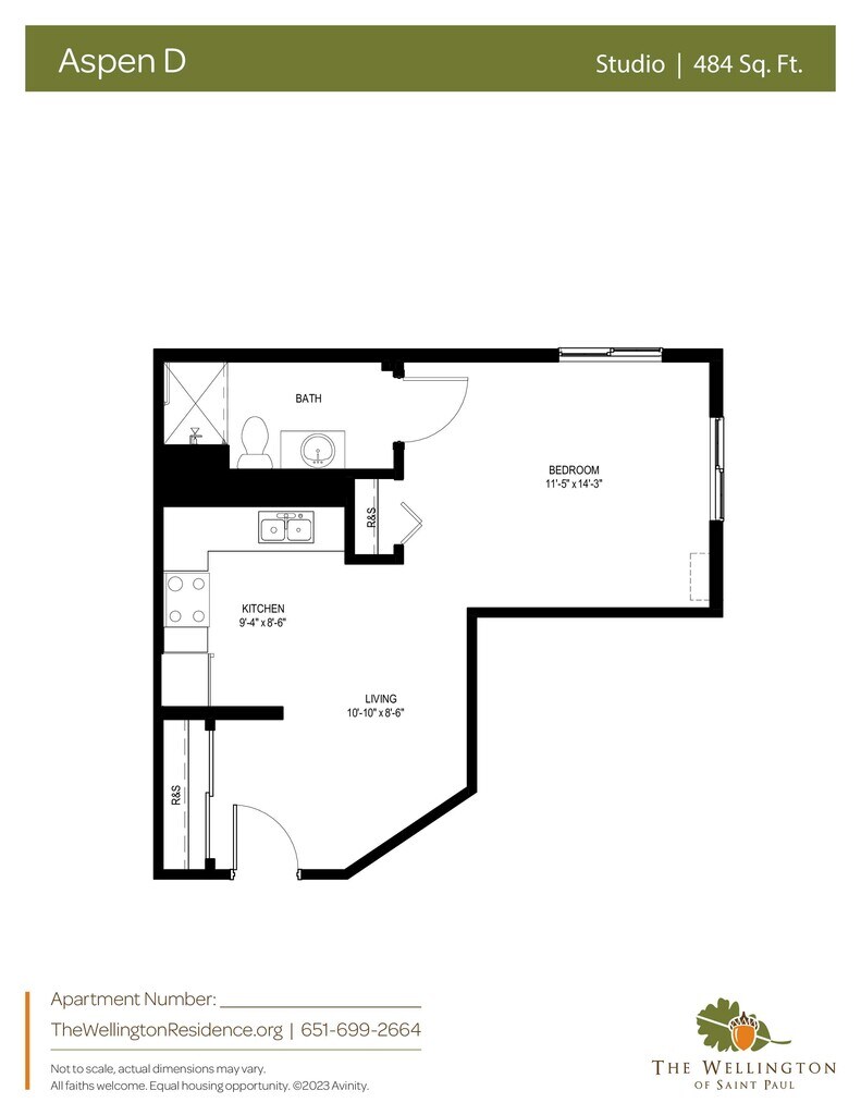 Apartment Model: Aspen C$839Studio, 1 Bath, 452 sq ftUnavailable![]()