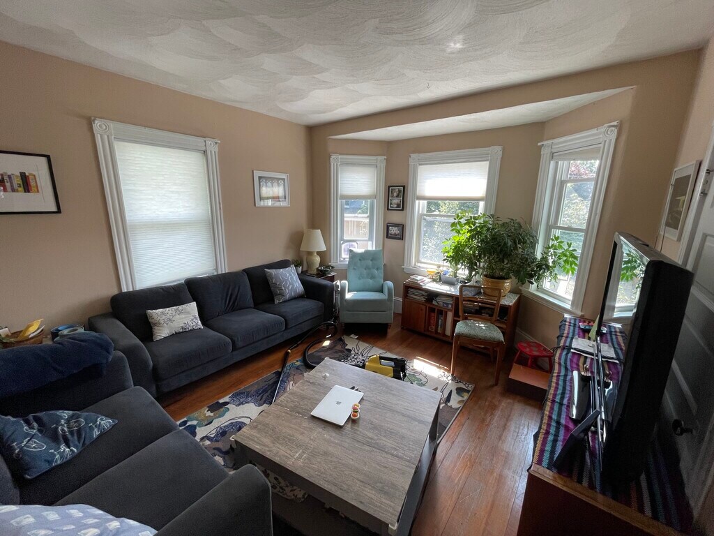 This charming unit boasts hardwood floors, high ceilings and spacious rooms with large windows that allow in an abundance of natural light. The eat in kitchen has exposed brick and now has white cabinets, gas range and dishwasher. The living room is spacious with a big bow window, additionally there are 3 good sized bedrooms with big windows and closets and a full bath with tub/shower combo Laundry in building No pets Street parking Located just under 20 min walk from Davis and close to many shops markets, restaurants, parks and more Available 9/1