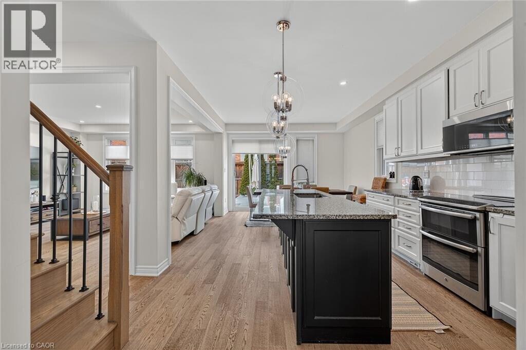Welcome to 55 West Oak Trail,located in the prestigious and family-friendly Huron Park community of Kitchener. Surrounded by scenic parks,trails,and close to everyday amenities,including Huron Natural Area,this home also offers easy access to Highway 401 and Highway 7 for a convenient commute. This stunning property features excellent curb appeal with a stone walkway,double garage with a professionally installed storage loft,and a cozy front porch with beautiful pond views. Inside,you’ll find high ceilings,hardwood flooring,and stylish finishes throughout. The open-concept main floor includes a modern two-toned kitchen with white cabinetry,an oversized black island with seating,stainless steel appliances,and a bright dining and living area ideal for entertaining. Step outside to a fully fenced backyard oasis with low-maintenance turf (with warranty) and a premium VEKA solid-core PVC deck with built-in lighting. Upstairs offers four spacious bedrooms,including a primary suite with a walk-in closet and contemporary ensuite,along with a full bathroom and convenient laundry room. The fully finished basement adds valuable living space with a large rec room,modern full bathroom,and plenty of storage,with potential for a separate entrance. Facing the pond and within walking distance to schools and parks,this upgraded home is the perfect blend of comfort,style,and location. (id:52069) ID#: 2139059