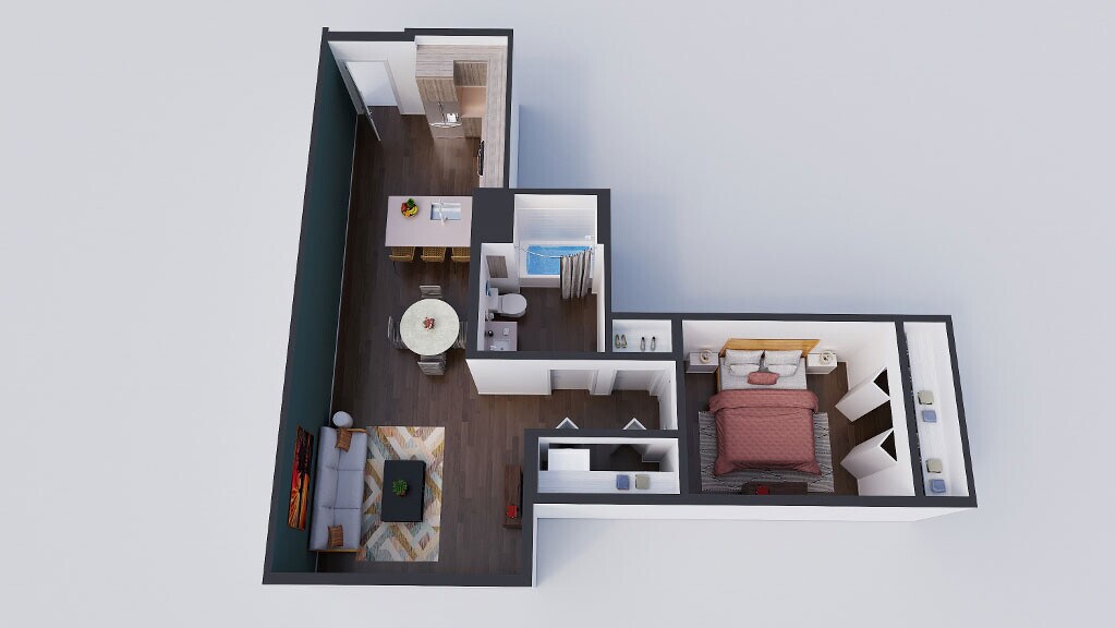 1 Bed, 1 Bath, 740-805 sq ftAvailable NowLargest 1 BedroomThis is the largest 1 Bedroom at this PropertyModel Gallery