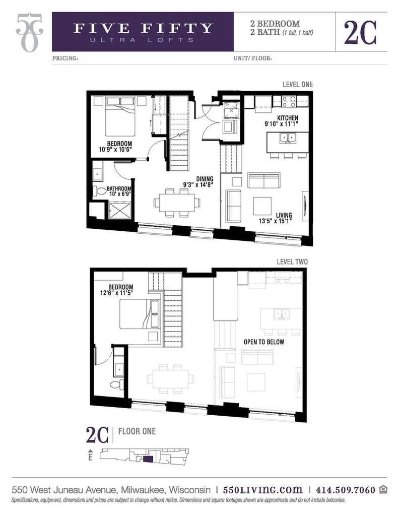 550 Ultra Lofts offers Studio to 2 Bedroom apartments starting from $1,425 and having 533–1,199 sq ft. Here is the current pricing and availability: