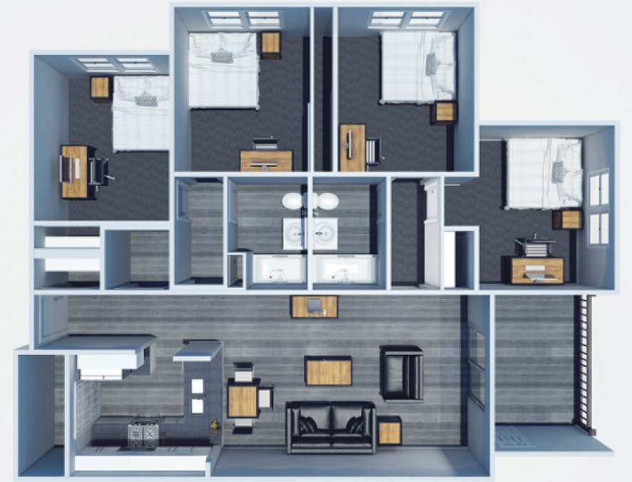 Apartment Model: 4 Bedroom Suite4 Bedroom, 2 Bath, 1100 sq ftUnavailable4 Bedroom Suite - Floorplan 1 4 bedroom Classic