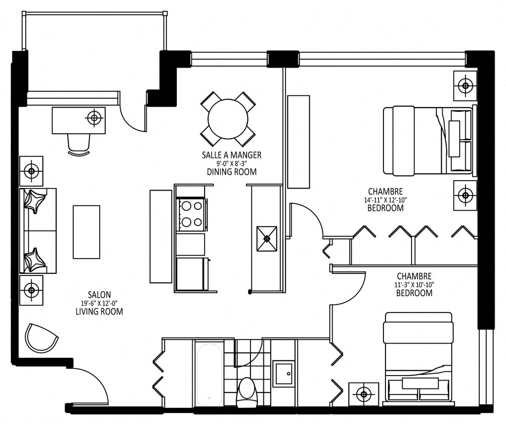Apartment Model: 5501 Avenue Adalbert - Plan B$1,6692 Bedroom, 1 Bath, 795 sq ftAvailable Now![]()