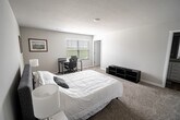 Discover an open concept and contemporary living space featuring a large kitchen island and oversized pantry, convenient guest bath, and cozy fireplace that creates the perfect ambiance for relaxation or entertaining. Upstairs you will find a large master bedroom with an ensuite bathroom and walk in closet. Also on the upper level are 2 additional bedrooms, a full bath, an open flex space, and laundry room. This home is equipped with smart home technology including keyless entry, a video doorbell, app controlled lights and garage door along with ability to set and change the thermostat while away. The home boasts contemporary design and ample living space, making it the perfect blend of comfort and convenience for any prospective renter.