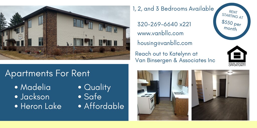 Extremely nice apartments for rent at Prairie View Apartments in Heron Lake, available immediately! Large apartments with huge extra storage room! Single level building in quiet neighborhood. All apartments being professionally remodeled and cleaned. Water/sewer, lawn/snow, garbage/recycling all included along with off street parking. Resident pays for electricity. Coin operated laundry on site. Pets possible with additional pet rent/deposit. Equal Opportunity Provider.