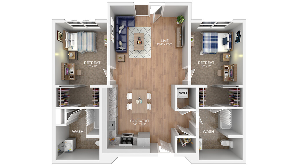 551 North is the perfect place for business professionals looking for a brand new luxury apartment complex with high-end amenities. All apartments include two bedroom with private bathroom pairing, The Linear floor plan includes an extra half bathroom for guests. We offer several lease terms, and an all utilities included price point to suit your specific needs. An added bonus is our fully-furnished apartments if you choose! Our standard offering includes 200+ mbps high speed internet with secure password protected wi-fi for all your remote working and streaming entertainment needs, trash/recycling service, water, and sewer. Meanwhile, our in-unit washer and dryer will make laundry time an easy time! Enjoy high-end amenities in our BRAND NEW state-of-the-art clubhouse that features a second-floor fitness center with yoga room, a resort style pool, on-site leasing office with secure mail and package storage, a business center with FREE printing, cafe with FREE self-serve Starbucks coffee, and more! 551 North is also a pet friendly complex. Contact us today to live at the next level! *All clubhouse photos are conceptual images.