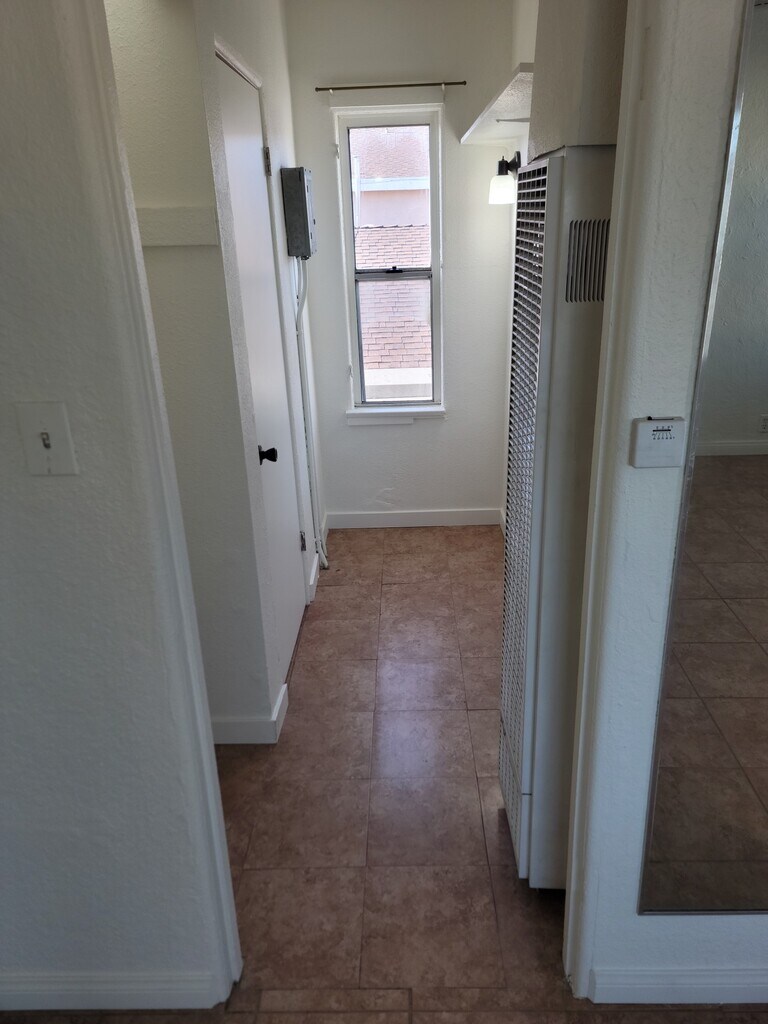 Nice, upstairs studio apartment. Tile flooring throughout, refrigerator included. Full bathroom with shower and tub. No pets. Smoke free premises. Application fee: $40.00 per adult over age 18.