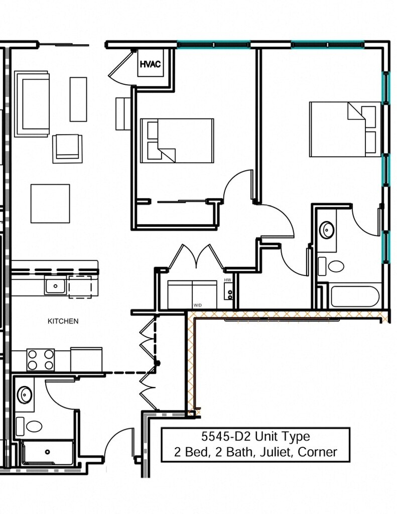 Apartment Model: 5545-D2 - 2 Bd, 2 Ba, Juliet, Corner$3,8502 Bedroom, 2 Bath, 1010 sq ftAvailable Now![]() - 5545-D2 - 2 Bd, 2 Ba, Juliet, Corner - Floorplan 1 ![]() - 5545-D2 - 2 Bd, 2 Ba, Juliet, Corner - Floorplan 2 Apartment Unit: 525Apartment Model: 5545-D2 - 2 Bd, 2 Ba, Juliet, Corner$3,8502 Bedroom, 2 Bath, 1010 sq ftAvailable Now- 5545-B2A - 2 Bd, 2 Ba, 2 Deck, ADA-Ready- From $3,9002 Beds, 2 Baths, 1170 sq ftPlus FeesAvailable Now- Model Gallery- Floorplans- Availability Details- Price - Availability Date - Unit - Sq Ft - Deposit - $3,900 - Available Now - 415 - 1170 - $4,100 - $4,200 - Available Now - 515 - 1170 - $4,400 - Model Amenities and Features- Features- Air Conditioning