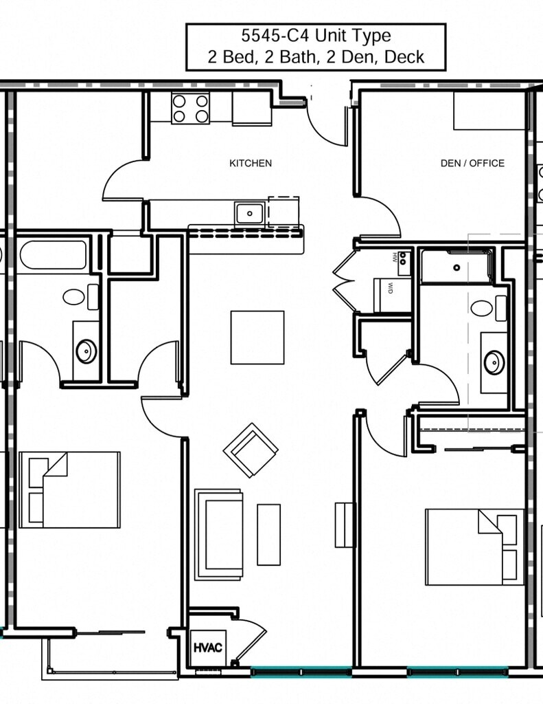 Apartment Model: 5545-C4 - 2Bd, 2 Ba, 2 Den, Deck$3,6002 Bedroom, 2 Bath, 1250 sq ftAvailable Now![]() - 5545-C4 - 2Bd, 2 Ba, 2 Den, Deck - Floorplan 1 ![]() - 5545-C4 - 2Bd, 2 Ba, 2 Den, Deck - Floorplan 2 Apartment Unit: 222Apartment Model: 5545-C4 - 2Bd, 2 Ba, 2 Den, Deck$3,6002 Bedroom, 2 Bath, 1250 sq ftAvailable Now- 5545-C3 - 2Bd, 2 Ba, 2 Den, Deck- $3,6502 Beds, 2 Baths, 1210 sq ftPlus FeesAvailable Now- Model Gallery- Floorplans- Availability Details- Price - Availability Date - Unit - Sq Ft - Deposit - $3,650 - Available Now - 221 - 1210 - $3,650 - Model Amenities and Features- Features- Air Conditioning