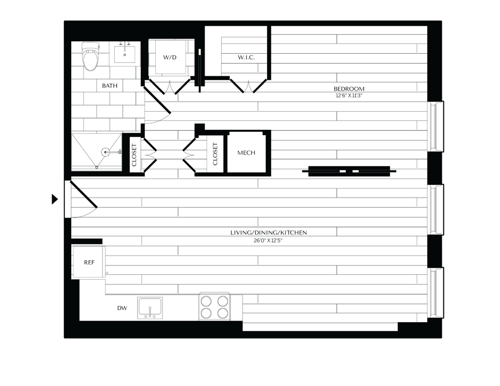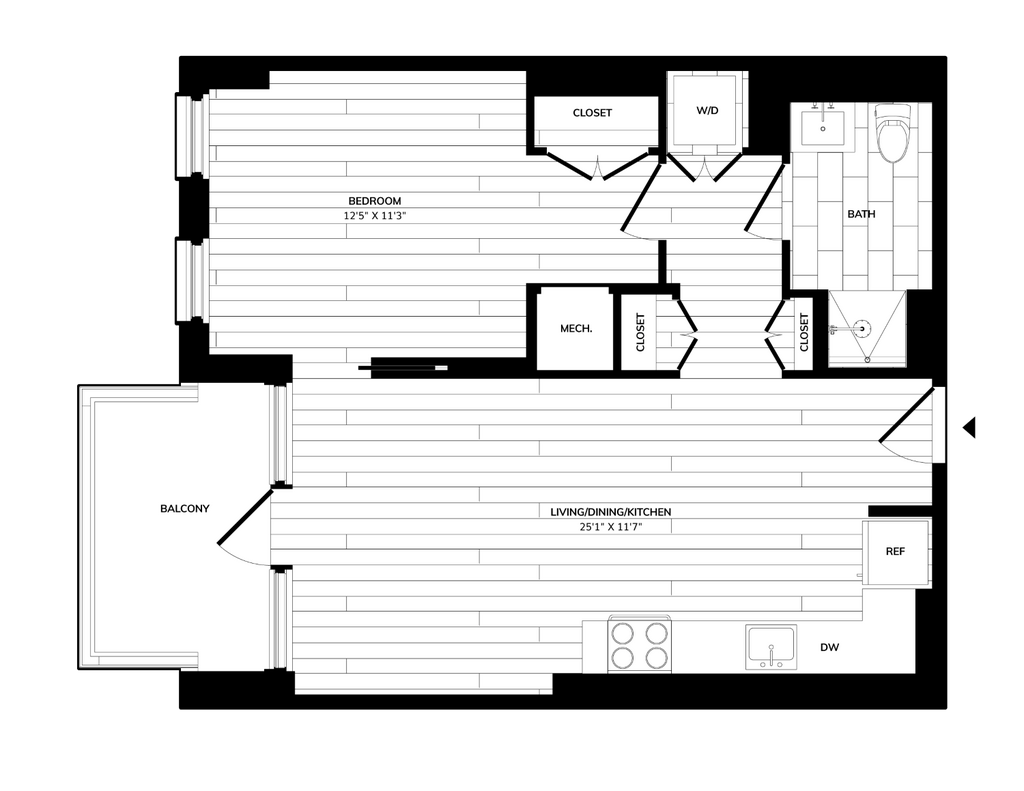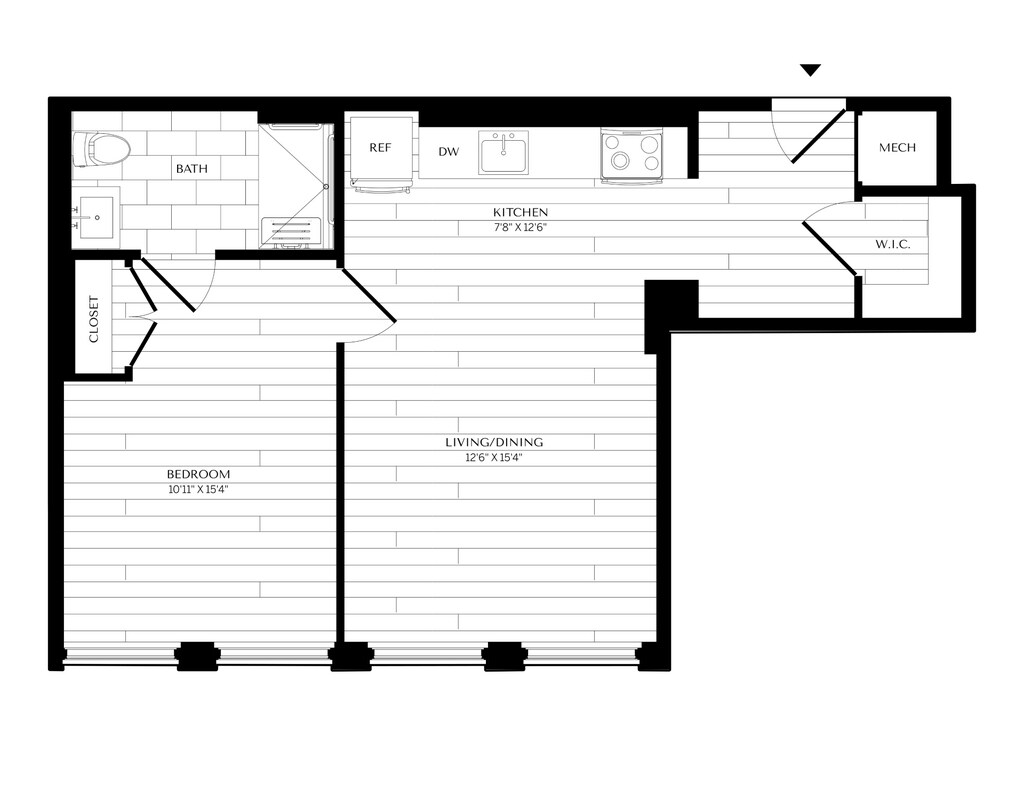 Studio, 1 Bath, 522 sq ftAvailable NowModel Gallery