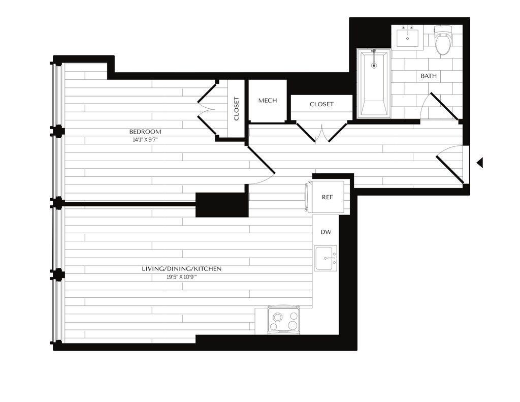 Studio, 1 Bath, 589 sq ftAvailable NowModel Gallery