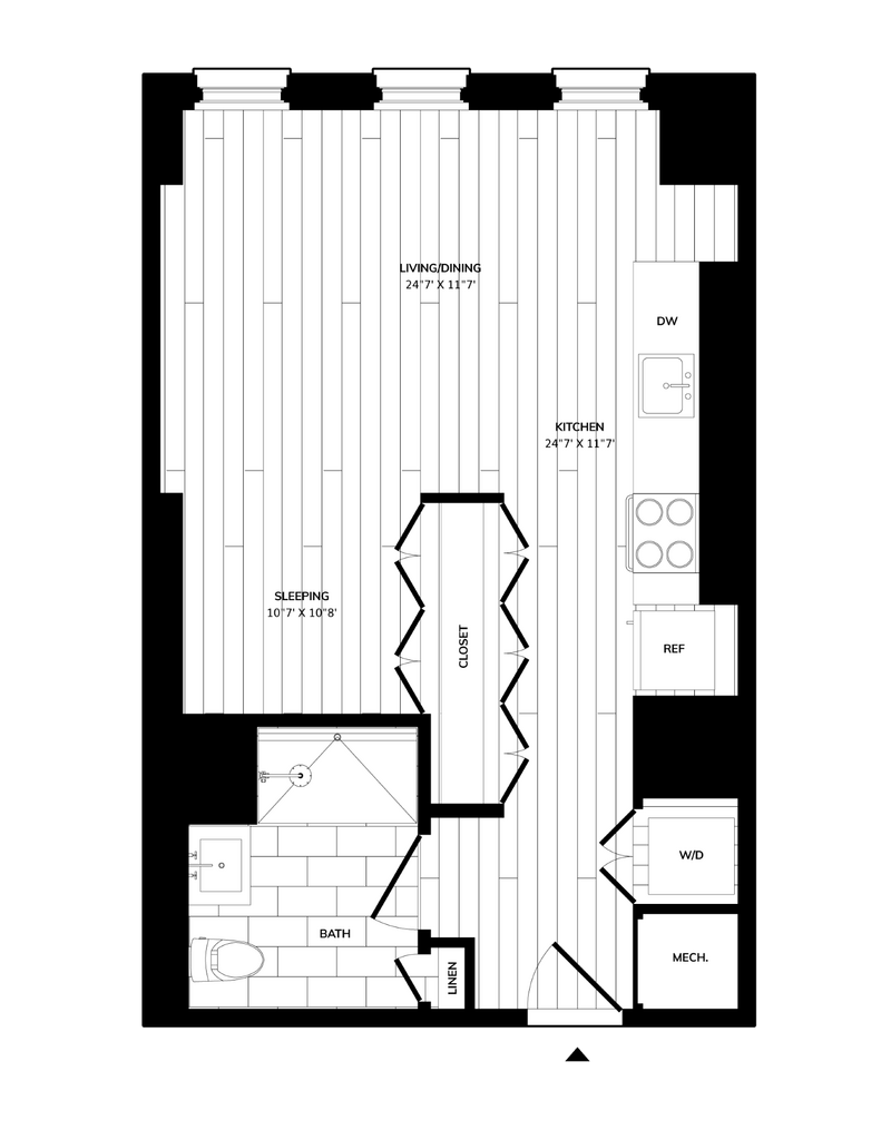 S2 - Floorplan 1 Apartment Unit: 1117Apartment Model: S2$2,043Studio, 1 Bath, 562 sq ftAvailable NowFloorplan S3