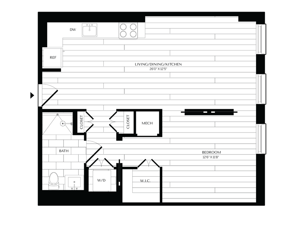 Studio, 1 Bath, 535 sq ftAvailable NowModel Gallery