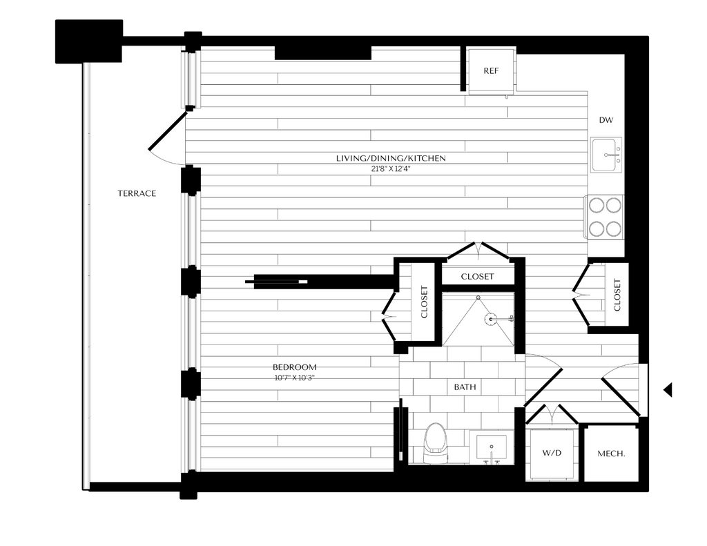 Studio, 1 Bath, 531 sq ftModel Gallery
