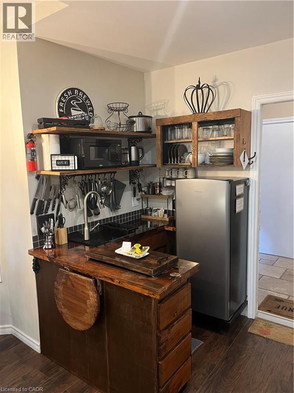 Tucked discreetly behind a quiet Dundas storefront,this fully furnished main-floor studio offers a rare blend of privacy,style,and convenience right in the heart of downtown. Thoughtfully designed with a unique open-concept layout,the space features distinct areas for sleeping,relaxing,and dining,creating a comfortable and functional living experience. The nicely appointed kitchen is ideal for everyday use with apartment sized fridge,cooktop and microwave,while the modem 3-piece bathroom adds to the ease of turnkey living. Perfect for professionals or those seeking a low-maintenance lifestyle,this charming unit also includes one dedicated parking space—an added bonus in this prime location that won't last long. (id:52069) ID#: 1525446