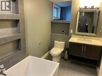 This luxurious 2-bedroom basement apartment is available for $2,000 + hydro and is ideal for professional long-term tenants. The unit features a spacious open-concept custom kitchen with quartz countertops and island,a bright living room with gas fireplace and TV mount backing,a spa-like bathroom with a large walk-in shower and freestanding tub,and a dedicated laundry room with stacking washer/dryer,custom cabinets,and wash sink. Both bedrooms are generously sized with carpet flooring and built-in closet shelving and rods. Two parking spaces are included. No pets and no smoking. (id:52069) ID#: 2091826