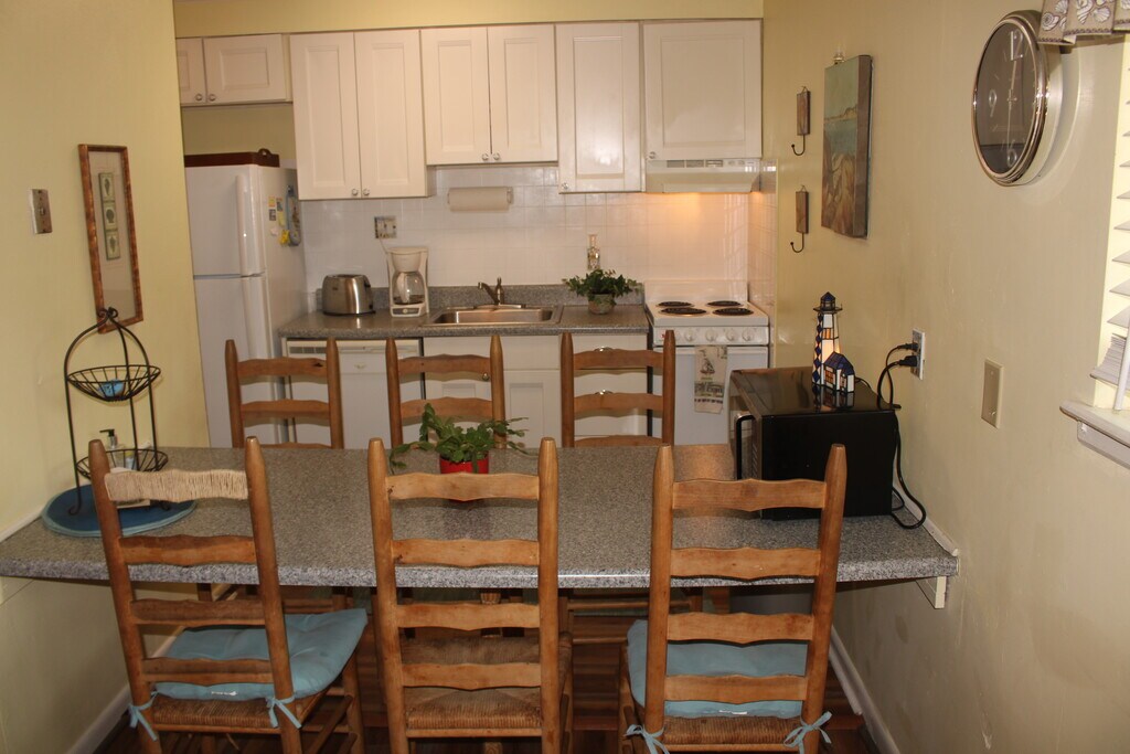 WELCOME! Available for off season 90+ day rentals starting Oct 1, 2025 (see Furnished Finder too). Searching for a relaxing home with all the resort amenities and great price in a high quality, clean condo? Your search ends here! Enjoy this fully furnished, well appointed condo that features everything you/your family need while living at the ocean! Grill on your private patio barbeque, dine al fresco on patio table, umbrella and 4 chairs. This is a single-level unit with no condos above or below, so nice and quiet. Rent includes all utils with $150/mo cap on Dominion Electric. The condo also features a personal, full sized washer and dryer, dishwasher, full size refrigerator and stove, dining seats for 6. First bedroom has 2 full size beds and its own private bathroom (with shower/tub combo) and TV; Second bedroom has one king size bed and flat screen TV with full bath, corner shower. Also pet friendly (add'l fee applies per pet, 2 max). Condo has three flat screen TV sets, Wifi and DVD players. All these fantastic amenities AND at the BEST location on the beach, just cross the street (Atlantic Avenue) to the sand and surf of the Atlantic ocean. The north end of this beautiful resort area is quieter than the main drag hustle and bustle area but just a mile or two away from all the excitement if you want anything from paragliding and boat rides to the best seafood at the beach! We have had repeat guests coming every year for the past 10 years. Also very close by is all the shopping, dining and fun beach attractions that make Virginia Beach a great, family-friendly place for all!