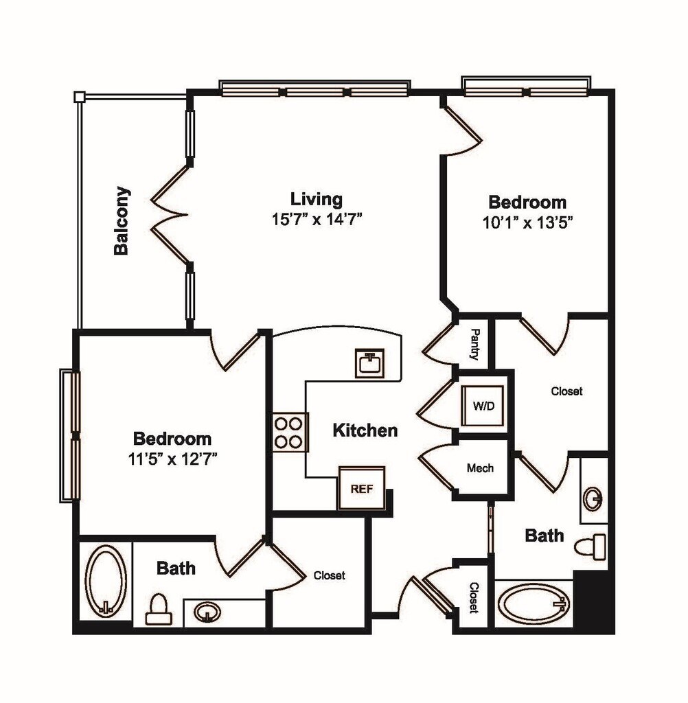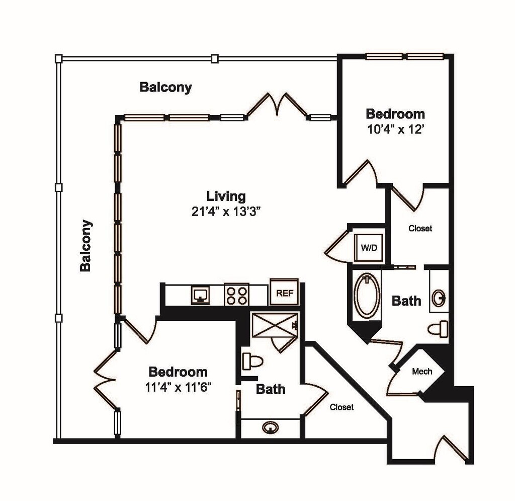 1 Bed, 1 Bath, 743 sq ftAvailable NowModel Gallery