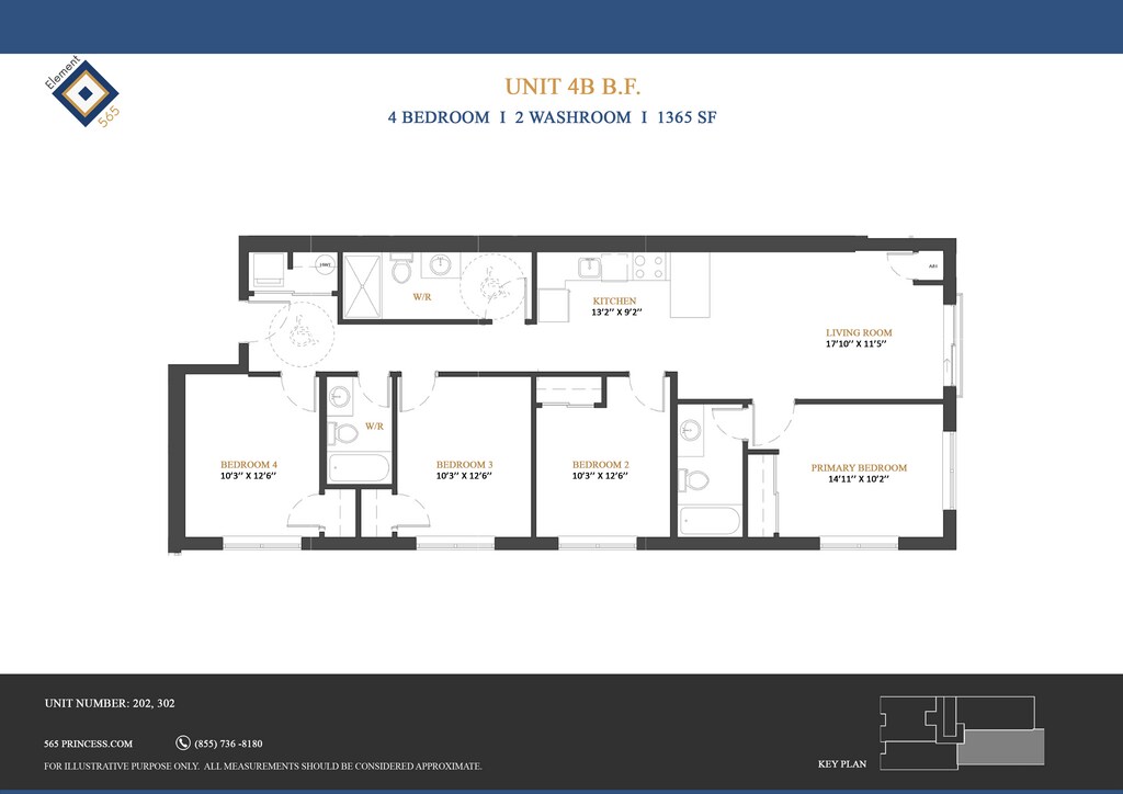 2 Bedroom to 4 Bedroom Apartments at 565 Princess currently range from $1,165 to $1,195
