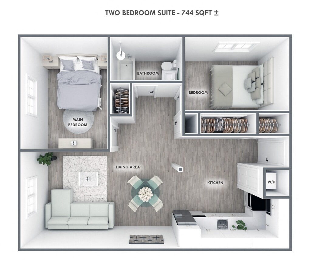 2 Beds, 1 Bath, 875 sq ftAvailable March 1, 2026Model Gallery