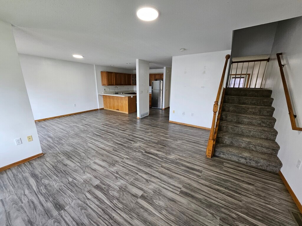 If this ad is still up and listed, it's still available. Stop asking if its available. Townhome style apartment. ~1,800 sq ft in total available September 1st. All units are side by side. No pets. Main level has mud area, kitchen, dinning, 1/2 bath with laundry, patio and fire place. Door to garage by mud area and door to basement by kitchen. Upstairs have 3 beds and 2 full baths. The master bed room has full bath connected. Basement is unfinished with large open area. Laundry hookups for washer and dryer on main floor. Garage fits 2 cars and driveway fits 2 cars. Tenant pays for all utilities - trash, water, gas/electric. Lawn and snow removal included. Background, credit, and employment check required.