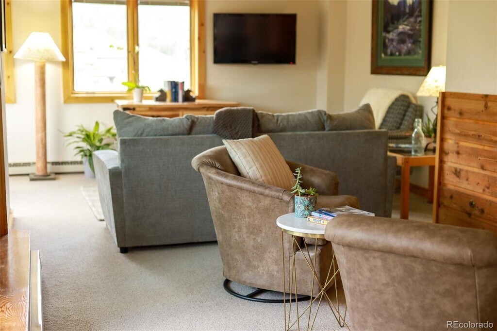 All new furniture in the great room! This 2-bedroom, 2-bathroom condo boasts an expansive 1,270 square feet of living space, offering the ultimate in comfort and convenience for your ski getaway. Situated in a prime ski-in, ski-out location with breathtaking views of the iconic Sky Chutes, the Lodge at Copper is a haven for outdoor enthusiasts. Step inside and be greeted by panoramic 180-degree views stretching from Vail Pass to the majestic Ten Mile Range, overlooking the tranquil West Ten Mile Creek. The large open balcony provides the perfect spot to soak in the scenery and fresh mountain air. Convenience is key with underground heated garage parking, an elevator, and three dedicated ski lockers. Secure coded building entrances and a private no outlet driveway ensure peace of mind during your stay. Indulge in year-round outdoor activities with skiing, biking, and hiking right at your doorstep. Your condo is within walking distance of the paved recreation path that connects you to all of Summit county and the Vail Valley. XC ski on the Rec path during winter months. The famous Colorado Trail is just steps from the building. The Lodge at Copper Mountain offers amenities such as three saunas, laundry facilities, and an outdoor hot tub with a party deck and gas barbecue grills, perfect for après-ski gatherings. Inside, the spacious kitchen and living room floor plan provide ample space for entertaining or relaxing in front of the fireplace after a day on the slopes. Just uphill from the American Flyer lift and Copper's alpine slide, the ski run comes right to your back door, offering prime access to the mountain. Schedule your viewing today and experience mountain living at its finest!