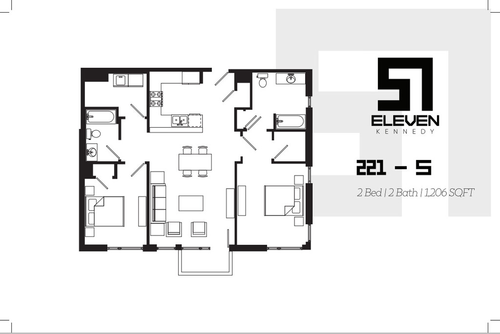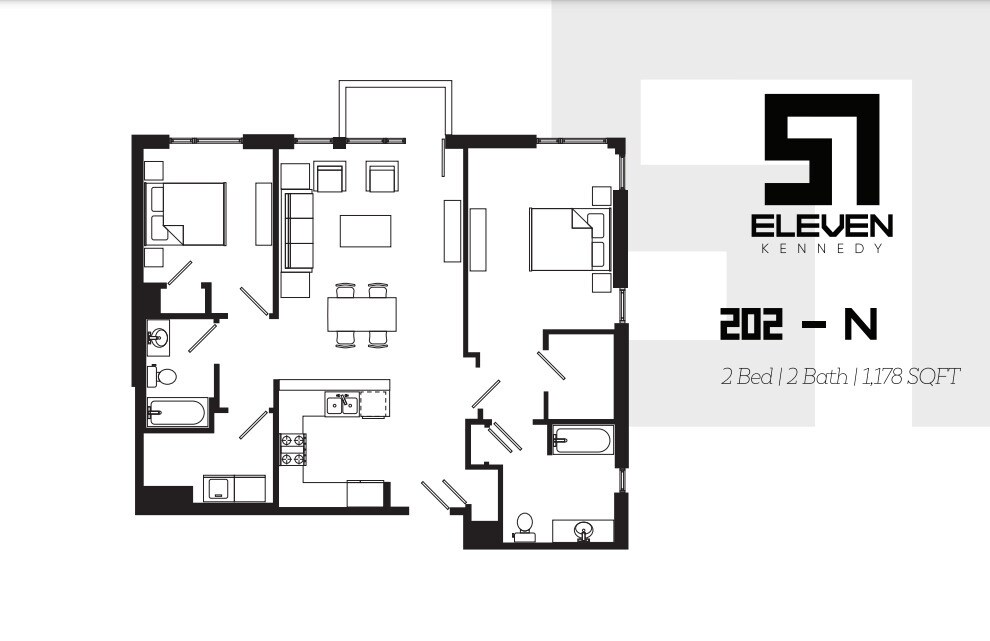 2x2 - Floorplan 2 Apartment Unit: 221Apartment Model: 2x2$3,3852 Bedroom, 2 Bath, 1206 sq ftAvailable Now![]()