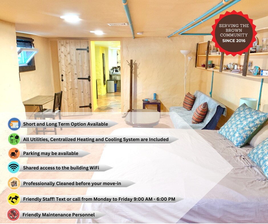 Flexible Leasing Available! Short-term and month-to-month options offered: • Month-to-month: +$150/month • Short-term lease: +$75/month Contact us for the full list of our apartments! Long-term and short-term furnished rentals, several layouts to choose from! All centrally located on the East Side of Providence, walk to Brown University, flexible lease terms, short and long term available, fully furnished, WiFi and all utilities included. Central air conditioning and heating. Common fenced in outdoor patio space with seating and outdoor WiFi. High ceilings and oversized windows in select units. Please call or email to discuss pricing options and for photos and/or videos or virtual and in person tours of available units that match your move in dates (a few apartments available in the same building) Clean and quiet properties, not party buildings, in the best neighborhood in Fox Point. Walk out your door to Talulah's and other great restaurants, groceries at Whole Foods, as well as trails for running and biking and India Point Park for the best sunsets and sunrises! Centrally located steps to the Brown campus, RISD, Wickenden St, Ives St, Fox Point & Wayland Sq. and College Hill. Quiet, w/comforts such as thermostat in apartment, hardwood floors throughout. And walk out the door to the best restaurants and cafes on the east side of Providence! Call to check availability for your move in date. We look forward to meeting you! Thank you!