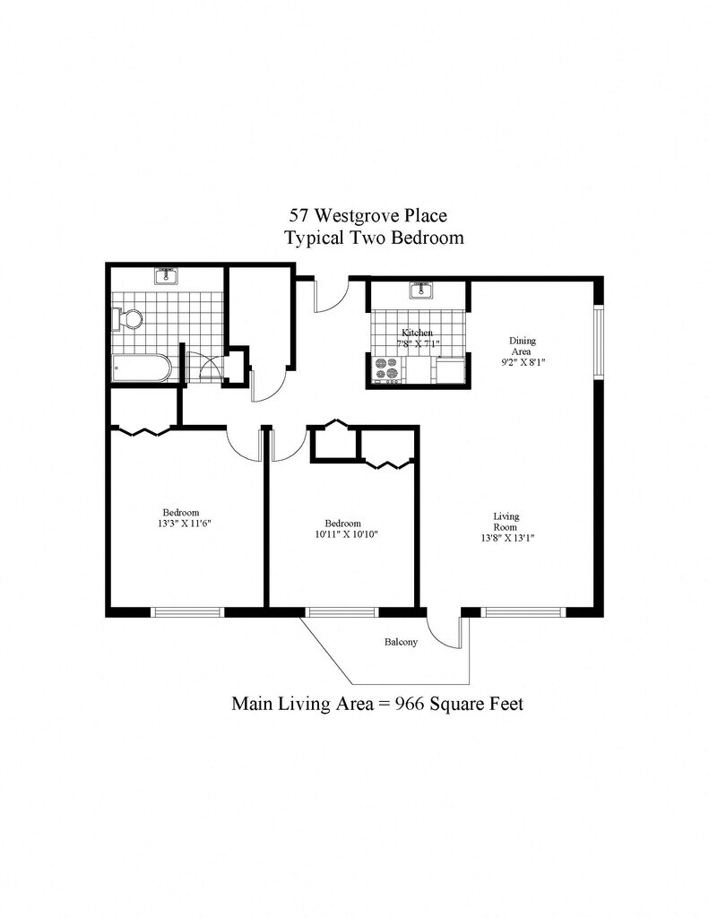 Two Bedroom - Floorplan 1 Apartment Unit: 36Apartment Model: Two Bedroom2 Bedroom, 1 Bath, 1053 sq ftAvailable Now