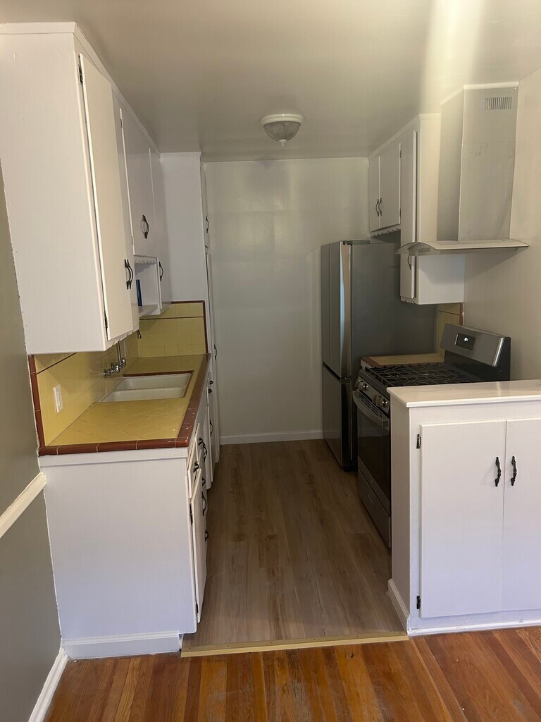 This beautiful, spacious apartment will be a great place to call home in the heart of Hollywood between Sunset Blvd and Hollywood Blvd. The unit is on the second floor of a gated, quiet and charming building. You're a stone's throw from Franklin Village, the Hollywood & Western Metro (7 minute walk), Griffith Park, Los Feliz Village, Hollywood & Highland. Hollywood, its environs, and the city of Los Angeles are right at your fingertips, with the US 101 a few minutes away, and Bob Hope Airport 17 minutes away. This apartment is a breath of fresh air amidst the hustle and bustle of the busy town. It has an open layout, with brand new stainless steel appliances (both fridge and oven), authentic, hardwood floors throughout, quartz countertops in the kitchen and bathroom, lots of closet space, a large living room and bedroom, with a row of windows letting into the living room all their natural light, giving this home a warm, peaceful, relaxing feeling. In the living area, there is room for a dining table, and even a work area if you would like. Or, you can put your home office in the bedroom - it will easily fit a couch, or a desk - in addition to your bedroom furniture and a king-size bed. The living room and bedroom each has an air-conditioner, and there is also, a wall heater to keep this apartment warm and cosy whenever needed. The stylish bathroom has a separate shower and a tub, depending on where your mood lies, and whenever you feel like meeting up with some people or listening to live music, your new neighborhood bar is just around the corner up on Hollywood Blvd - the "Know Where Bar." Prospective renter must have good credit (650+), and monthly income of at least two and a half - three times the gross rent. Proof of income is required (for example- PayStubs, W-2, 1099 or tax return).