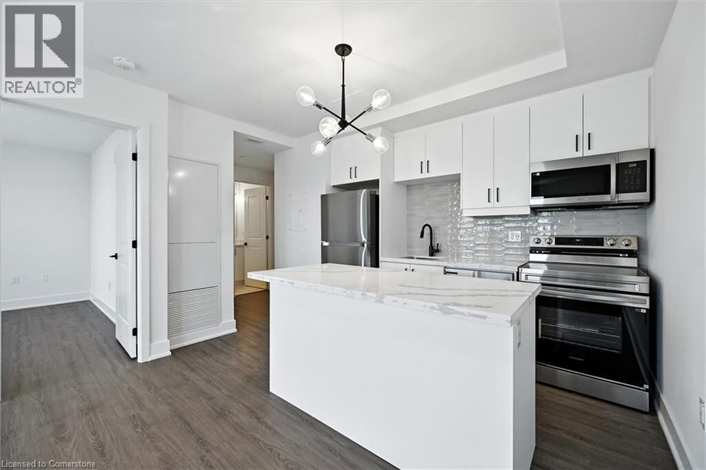 Brand New 1 Bedroom PENTHOUSE Condo Never Lived In! Over 12K spent on upgrades for you to enjoy,ideally situated in the desirable West Brant neighbourhood. 1 underground parking space,1 storage locker and custom blinds on windows included. Expansive balcony with west looking views over the city. Condo features soaring ceilings,large windows,and a bright open-concept layout perfect for comfortable modern living. The sleek kitchen comes complete with quartz countertops,upgraded central island,and stainless steel appliances,creating a stylish space for cooking and entertaining. Enjoy the convenience of living close to major shopping,scenic parks,and easy access to public transit,all while being part of a newly built community that combines comfort with contemporary style. Building amenities: gym,bike,yoga and party room. (id:52069) ID#: 2035996