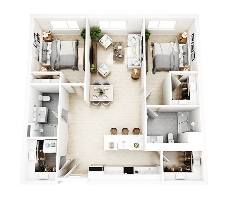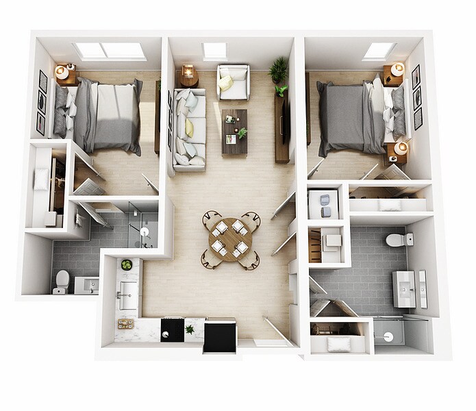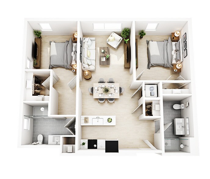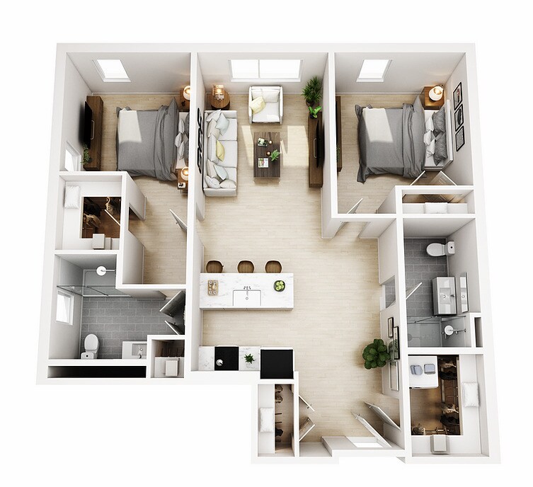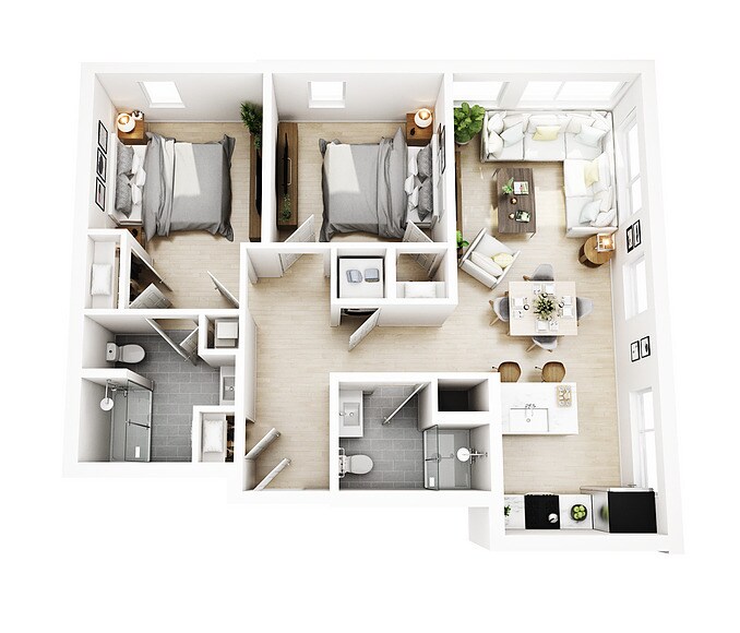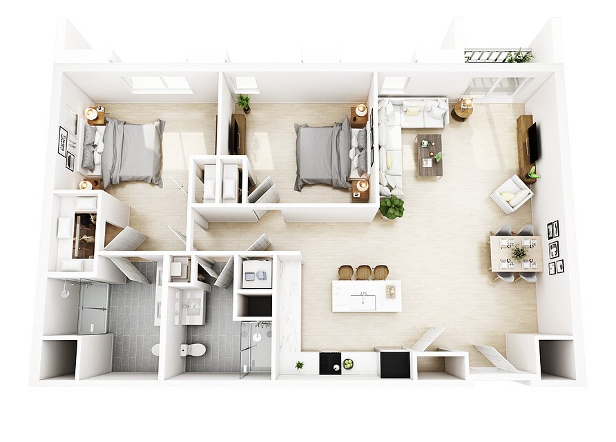 2 Beds, 2 Baths, 955 sq ftModel Gallery