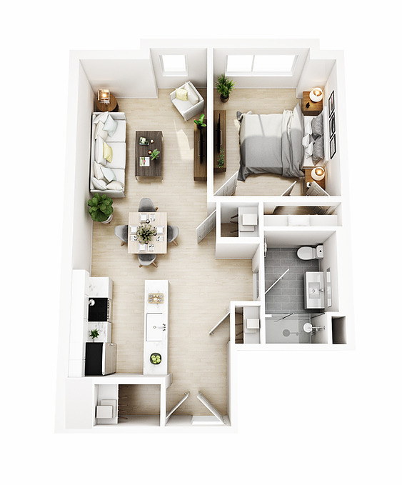 1 Bed, 1 Bath, 675 sq ftModel Gallery