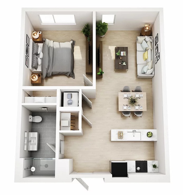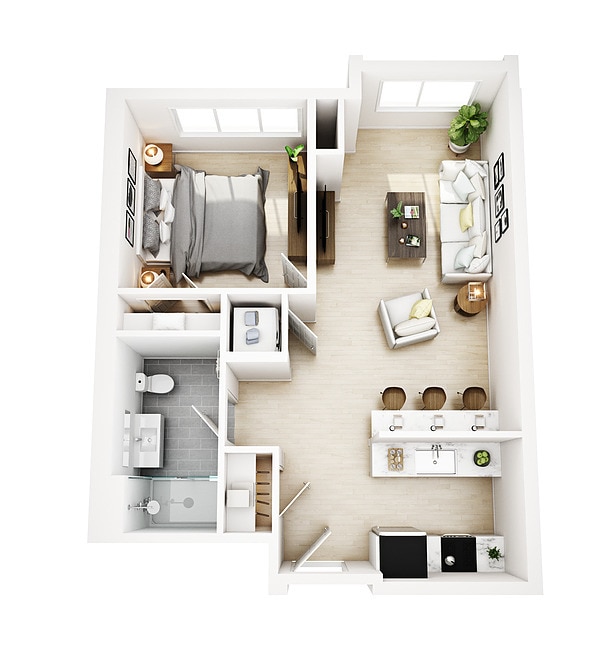 1 Bed 1 Bath Style D - Floorplan 1 1 Bed 1 Bath Style B
