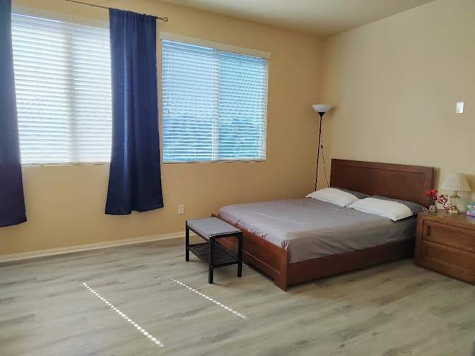 A private bedroom with a shared bathroom in Eastvale for rent. A nice house located in Eastvale, Close to the shopping center (Home Depot, Costco, BestBuy, Ranch 99, Amazon Warehouse, Restaurants) and Hwy 15, 60, 91, in-house Washer/Dryer, Double door Refrigerator with ice maker, Luxurious Vinyl Plank Floor, Granite countertops in the kitchen and bathrooms I am looking for a clean, and quiet full-time professional or student. Light cooking only; Front street parking; No operating a business out of home. 1 PERSON ONLY No pets, no couples, no smoking or drinking, no drugs, no overnight guests, Month to month lease available. Background check before moving in. 1 month rent and one-month refundable deposit.