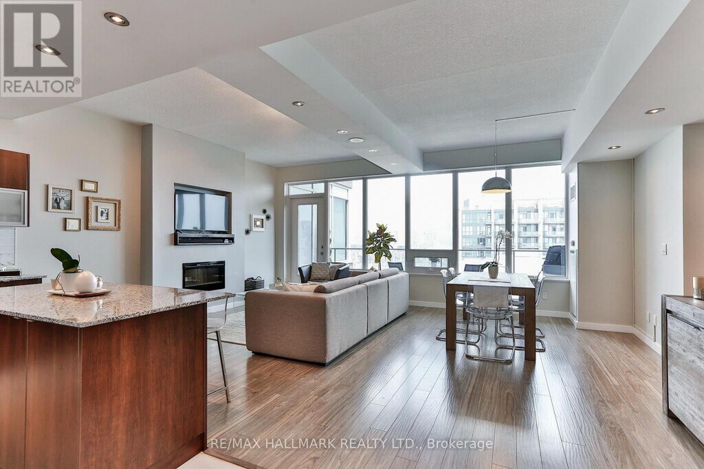 Rarely available,stunning penthouse with dynamite view seeking new responsible,professional inhabiter who appreciates style,space and fantastic natural light. With 1,200 sq. ft. of total indoor/outdoor living space at your disposal,the possibilities are truly endless. The open,expansive layout is as perfect and versatile for entertaining as it is for relaxing and re-charging. A spacious terrace with breathtaking views of Toronto's cityscape is sure to induce envy amongst your friends and we won't apologize for it. Added bonuses include modern finishes throughout,an electric fireplace and a built-in desk in the den that converts to a Murphy bed to accommodate guests and of course the clincher - 10 Ft. ceilings. Incredible area amenities,door-step access to Transit and proximity to some of Toronto's best shopping,restaurants and nightlife are the sizzle to your everyday living steak. Life hits different on the Penthouse my friends,let's see if you're the right match! (id:52069) ID#: 1971952