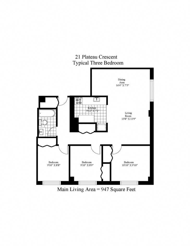 Apartment Model: Three Bedroom3 Bedroom, 1 Bath, 870 sq ftUnavailableThree Bedroom - Floorplan 1