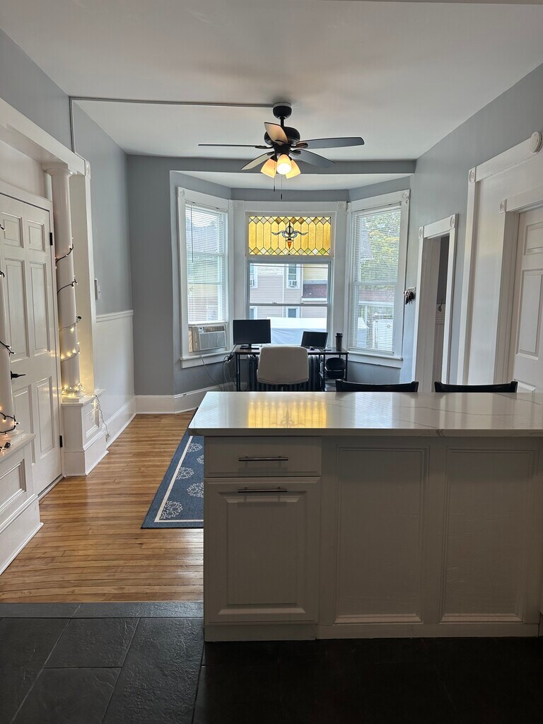 Just renovated from top to bottom, this 2 bed, 1 bath apartment with a Private Front Porch is located in a professionally managed apartment building and will be ready by September 1st (or potentially sooner). High end finishes include quartz countertops, refinished hardwood floors, new GE Stainless Steel Appliances, Built-in Dishwasher, in-unit Washer/Dryer, shaker-style cabinets, beautiful tile flooring in kitchen/bathroom, all new light fixtures & ceiling fans, dual vanity/sink sets in bathroom, Moen plumbing fixtures, beautiful original stained glass and much more. Access the unit with an electronic deadbolt/keypad and monitor the front door in real-time with a Ring Video Doorbell. There is assigned off street parking included in rent. If you need additional storage space, there are garages and storage units available (on site) for an additional fee. Conveniently pay rent, submit maintenance requests, and access information using the Online Tenant Portal. The property is located within walking distance of downtown and in close proximity to routes 57, 31, and 78, among others. Pets are welcome for an monthly additional fee. Prospective tenants must undergo a credit and background check, and make 3x the monthly rent to qualify.